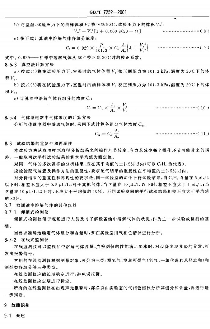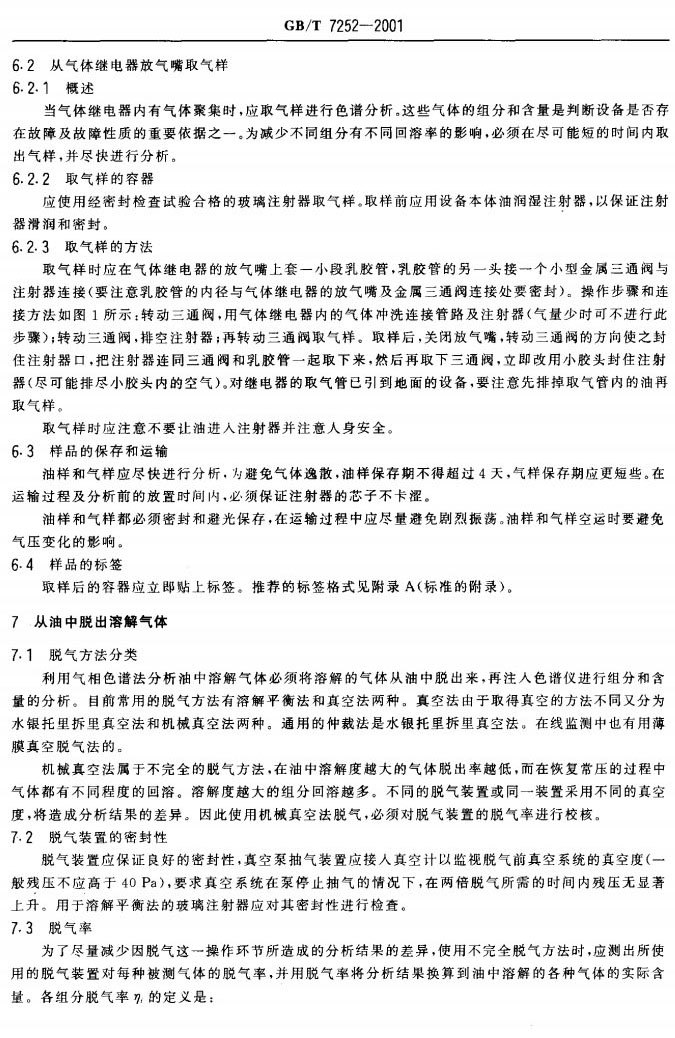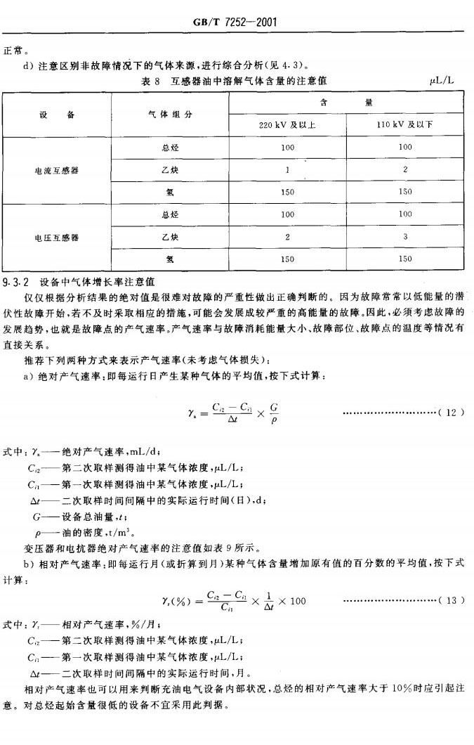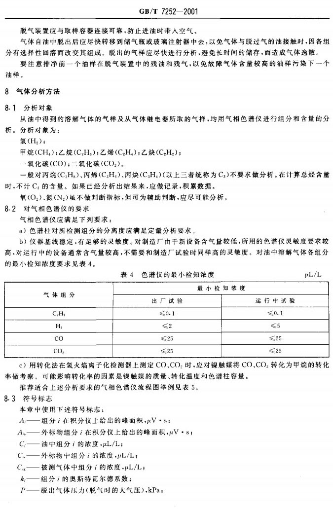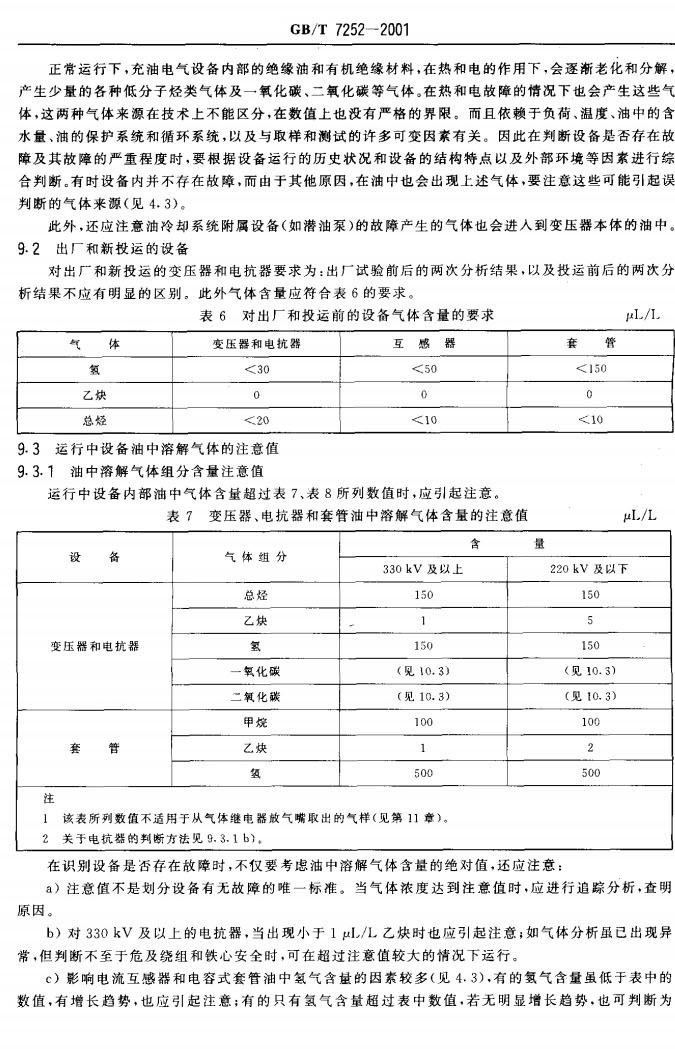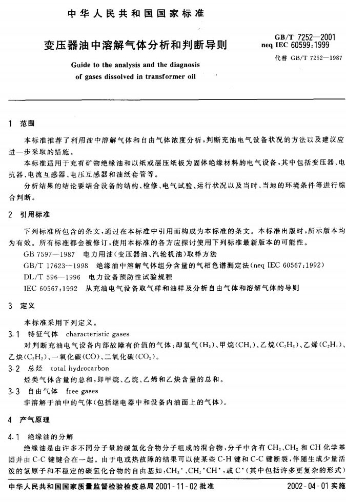 GBT 7252-2001 變壓器油中溶解氣體分析和判斷導(dǎo)則